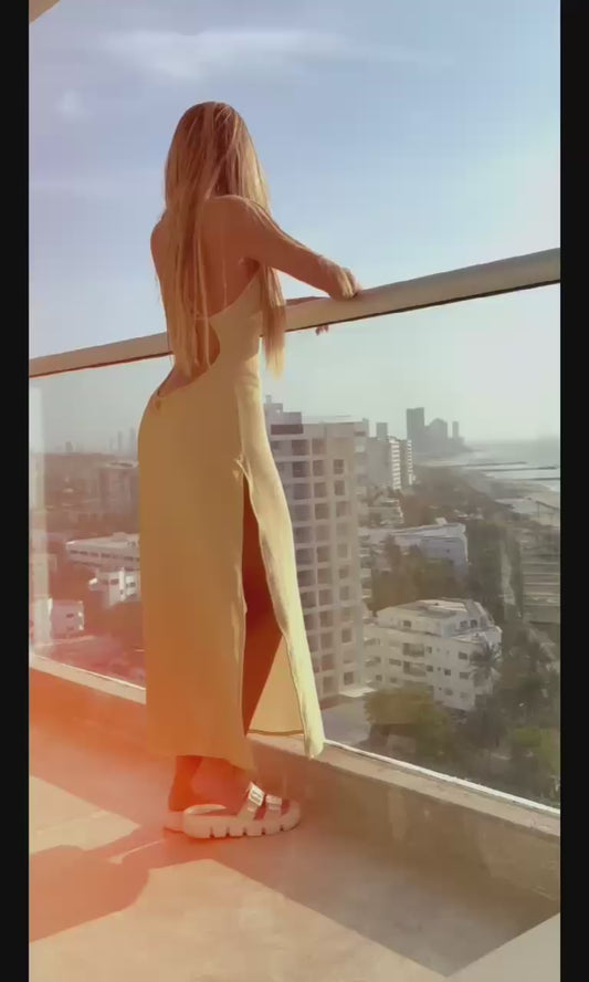 Solaya Aura Dorada – Gold Open Back Maxi Dress
